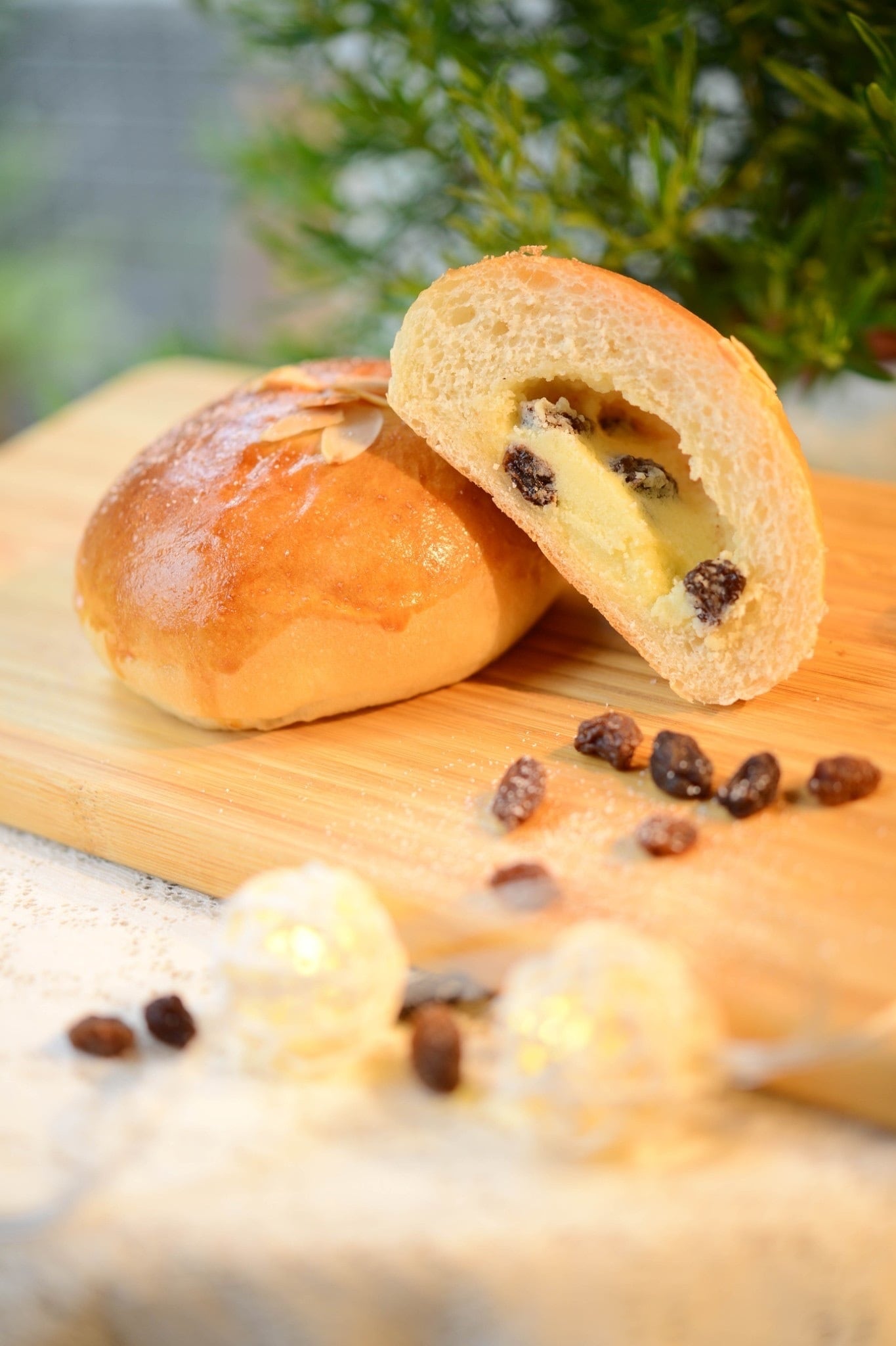 ミルクパウダーとバターをふんだんに使い中にレーズンを混ぜた甘みの強い新食感のパンになっています。